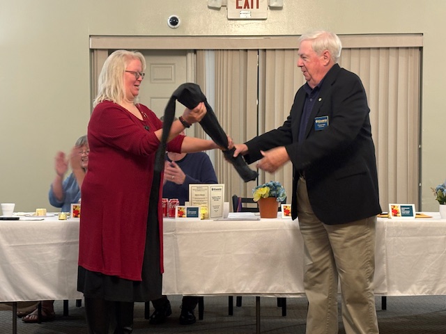 The club officers and board members were installed by Lieutenant Governor, Wayne Meyer. Wayne Meyer and Marianne Muraska accepted their distinguished pins for our club being named a Distinguished Club in 21-22. Debbie Whitfield excepted the certificates for our club for first place in Community Communications and third place in club communications in The PA district. Incoming President, Keith Smith presented Andrea Cuda Gillespie with a gift and appreciation for her service as a leader to our club in 22–23.